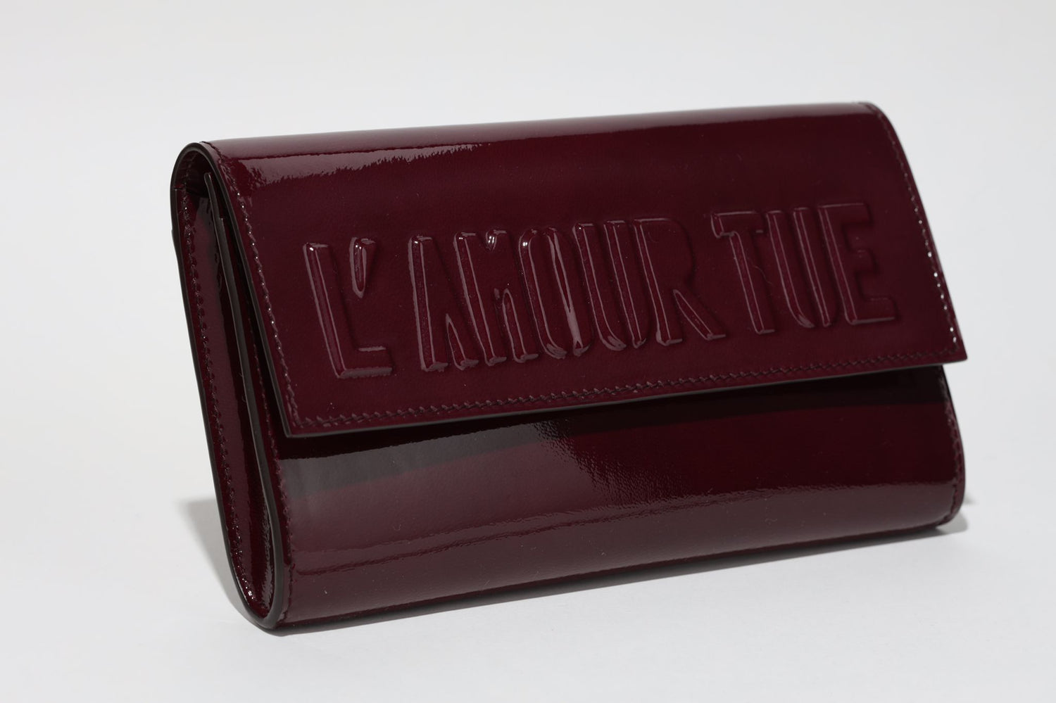 L'Amour Tue embossed clutch bag in patent lambskin